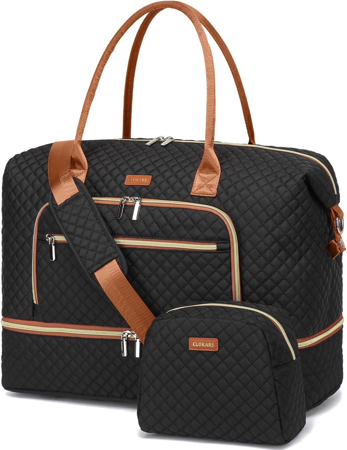 Duffle Bag for Women Travel, Large Carry on Bags Weekender Overnight Tote Bag with Shoe Compartment for Airplanes Gym Hospital, Gifts for Women, Black
