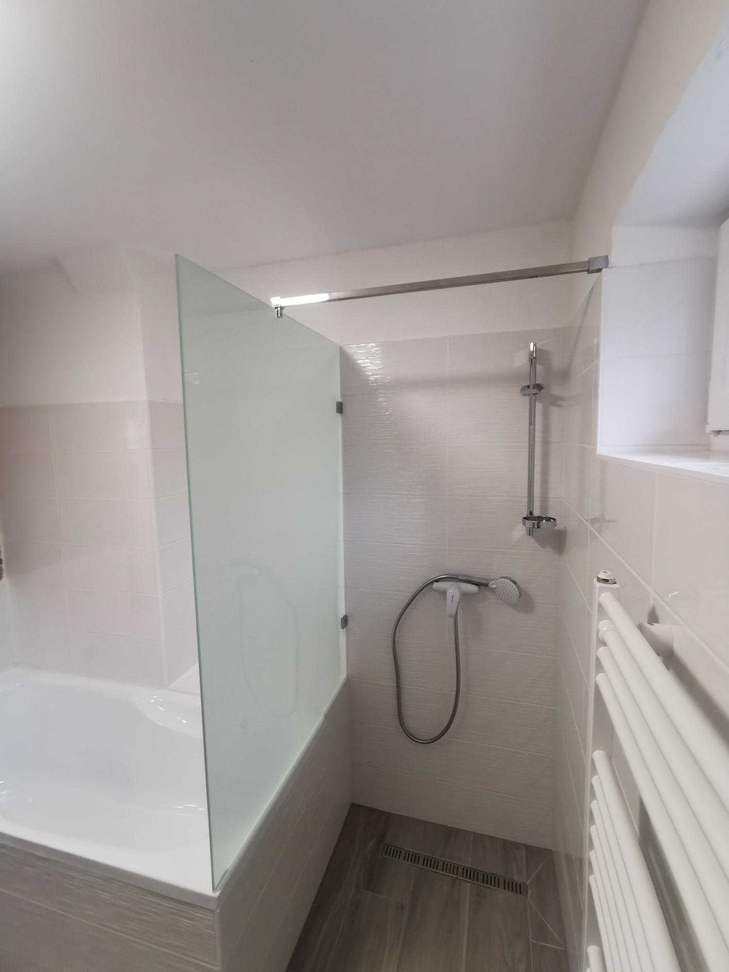 Walk-In-Duschkabine. In diesem Fall ist eine Glasbreite von mindestens 120 cm empfehlenswert.