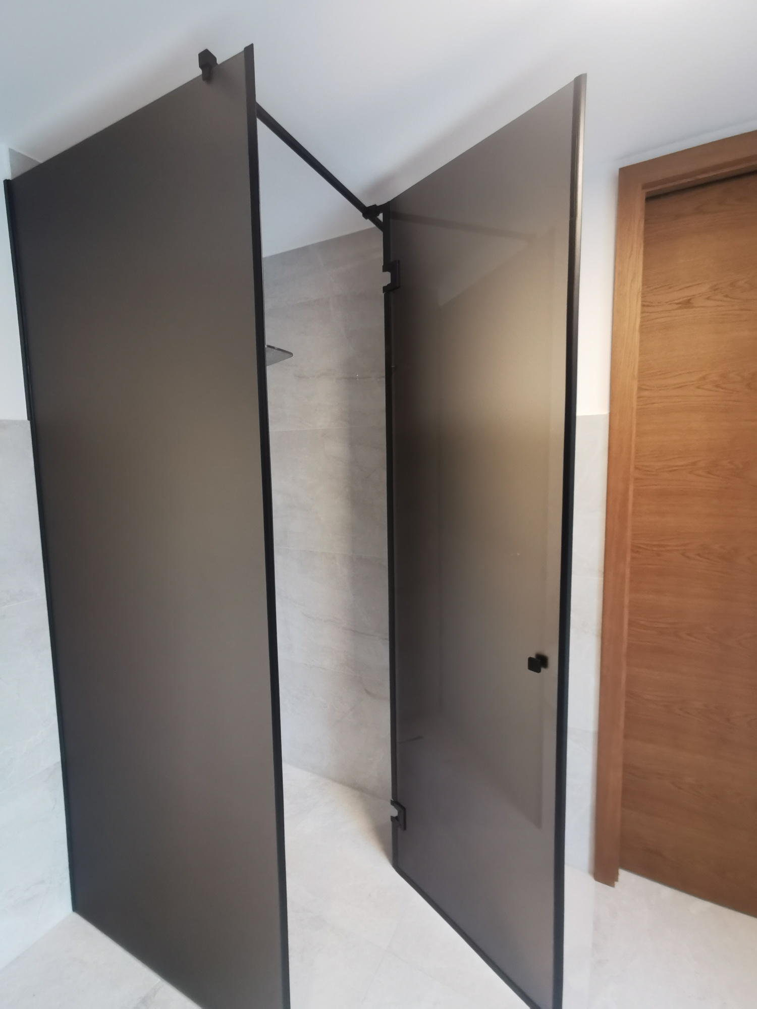 Die durchschnittliche Höhe unserer Duschkabinen beträgt 2 m, die individuellen Glasmaßen ermöglichen aber auch die Anfertigung von raumhohen Duschkabinen. (Wenn die Kabine vollkommen geschlossen ist, ist es empfehlenswert, eine Dunstabzugshaube über die Duschkabine einzubauen. Vier Glasarten sind in unserem Angebot verfügbar
