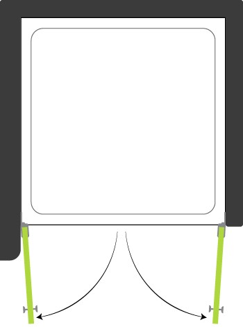 Unsere Beschläge für Duschkabinen sind ebenfalls in 4 Farben verfügbar (Scharniere, Türknöpfe, Wandbefestigungen, Stabilisationsstangen, die die feststehenden Glaselemente verankern). Die Farben der Beschläge werden den Badarmaturen bzw. dem Kantenschutz der Fliesen angepasst.